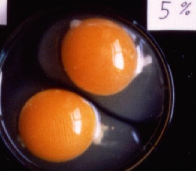 海苔粉を飼料に5%添加すると黄身の色が濃くなりました。