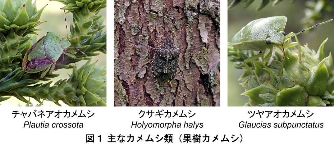 令和6年は発生量が多い表年だったため、彼らにしばしば出会われたのではないでしょうか。カメムシ類(果樹カメムシ)は、ナシ、モモ等の果樹に被害をもたらすことが知られていますが、実はスギにも被害をもたらしているのをご存知でしょうか?